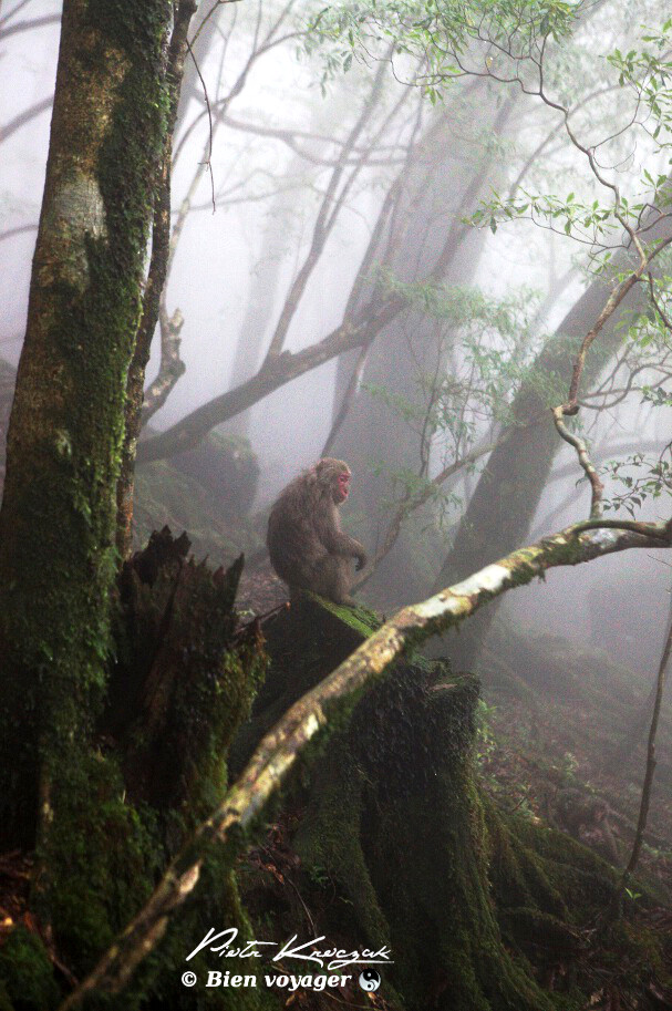 Sur l’île de Yakushina, on peut croiser de nombreux cerfs et de singes qui ne sont pas du tout farouches et se balader au milieux des sugi (cyprès japonais) aux racines millénaires. (selon les légendes). Le plus vieux Jōmon Sugi aurait 7000 ans (2300 selon les scientifiques) et se trouve sur la face nord, à 1300m, du plus haut sommet. Si vous souhaitez le voir, comptez au minimum 2 jours complets sur l’île. Il est ainsi possible de réaliser un trek jusqu’au sommet comme l’a fait un collègue espagnole rencontré à l’auberge. Je porte le regret de n’avoir pas su plus tôt qu’il était possible d’en réaliser un… il est certain sinon que j’aurai chamboulé notre emploie du temps dont la suite consistait en l’ascension du mont Fuji.