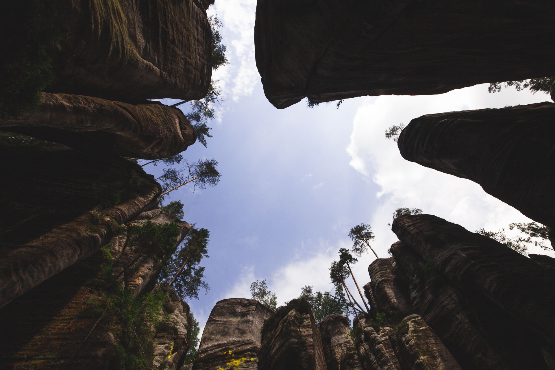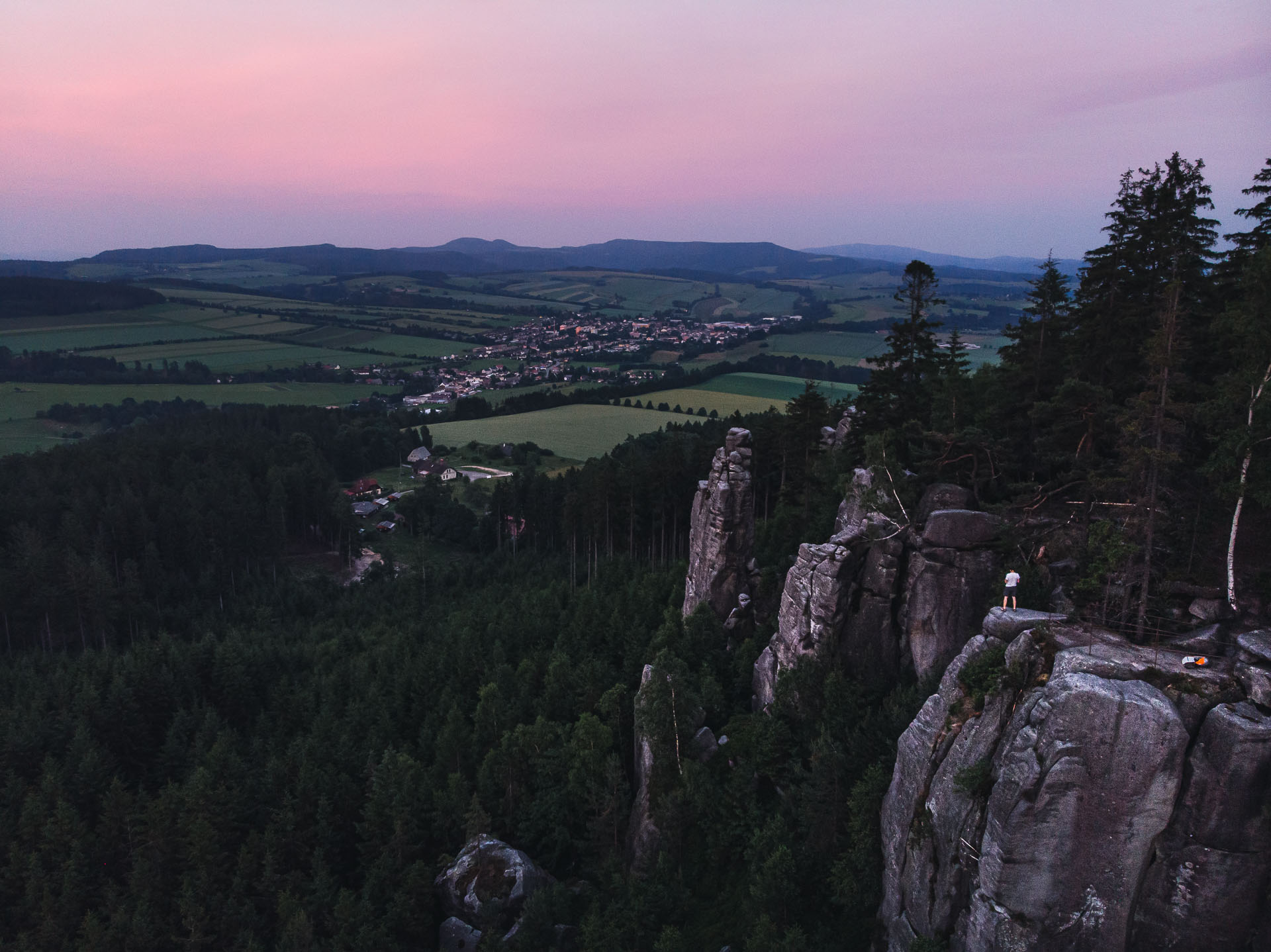 Si vous cherchez un endroit pour réaliser une belle balade forestière avec un point de vue surplombant les forêts aux alentours, les murs de Broumov répondront à vos attentes. Que ce soit pour le lever ou pour le coucher de soleil, une fois installé sur l’un des champignons de pierre posés entre entre les villes de Police nad Metují et de Broumov, vous aurez droit à un magnifique panorama ouvert sur la ville rocheuse d’Adršpach, ainsi que sur le haut plateau du mont Ostaš, sans oublier, au loin, sur le monastère baroque de Broumov dans lequel nous avons passé une nuit.