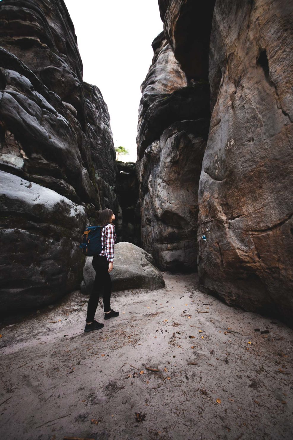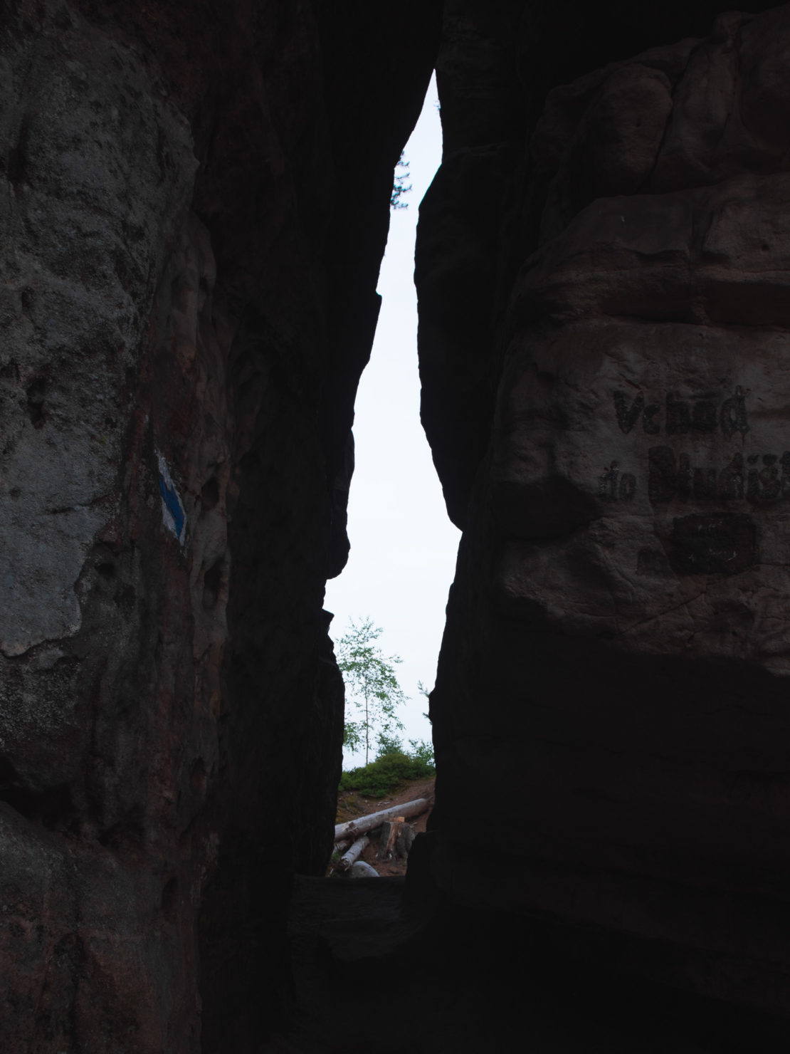 Depuis la colline Hvězd, il y a un chemin balisé qui vous emmène dans les méandres de ce labyrinthe de pierre aux passages parfois très étroits. Si vous vous lancez pour une exploration au coucher du soleil, surtout, n’oubliez pas vos lampes frontales car il fait sombre très rapidement lorsque l’on est en train de marcher dans la gorge.
