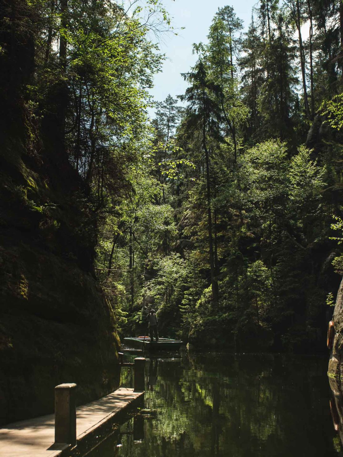 Il y a des formations rocheuses remarquables comme le Nid d’aigle, la Dent ou le Pont du Diable. Il y a une petite cascade qui se cache derrière la statue de Goethe. On peut aussi faire une mini traversée du mini lac de retenue en barque, toutefois cela ne sera pas pour ceux qui n’aiment pas être entassés et, sans un traducteur ou une connaissance avancée du tchèque ou du polonais, je crains que les quelques bons mots du batelier ne vous passent bien au-dessus. Après, rien d’impressionnant en soi rassurez-vous, vous ne manquerez pas grand chose.