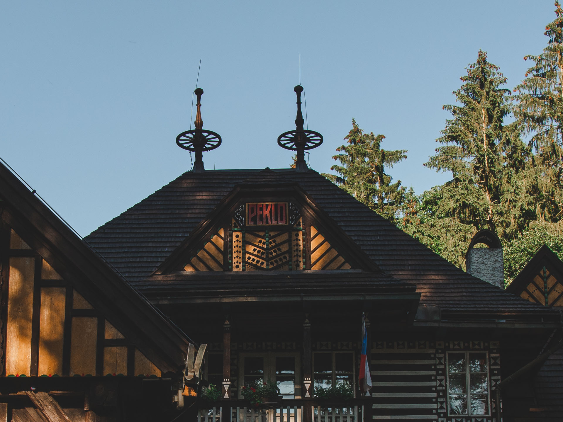 En effet, on se rend dans la réserve naturelle de Peklo, (enfer en tchèque) alors que la vallée au confluent des rivières Metuy et Oleshenka nous rappelle davantage un monde enchanté naturel, préservé ou des elfes pourraient sans nul doute prendre plaisir à trouver refuge que l’antre du Diable. Au sein de la réserve de Peklo se trouve le refuge du même nom qui dont les plans ont été dessiné par l’architecte Jurkovič, surnommé le poète du bois qui mélangeait savamment les styles folkloriques avec le style Art Nouveau.