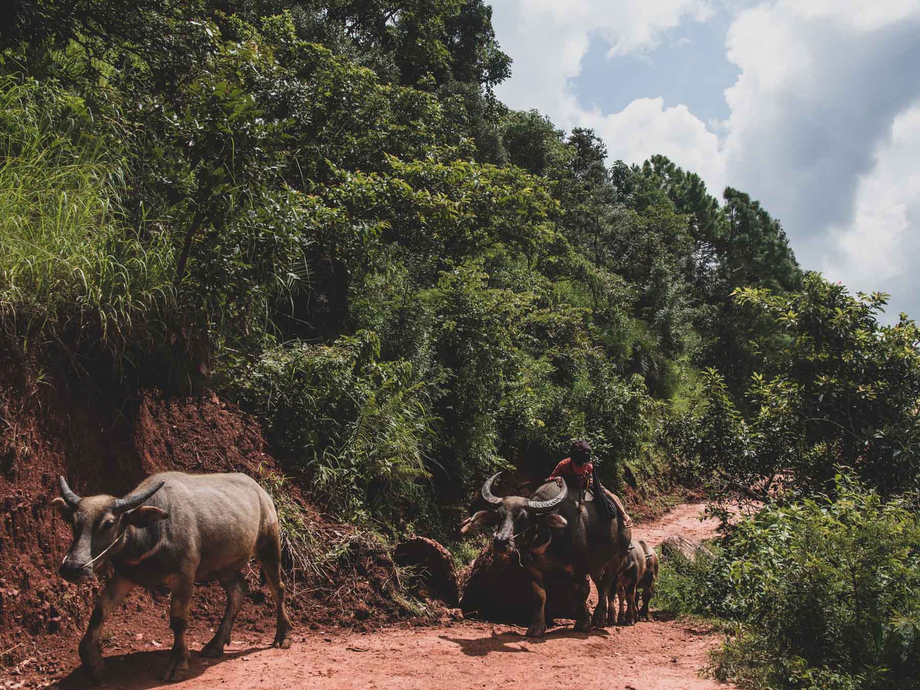 Chaque buffalo mâle adulte vaut 1000e, Jolene en a compté 20, c’est donc ce que l’on considère ici comme une “riche” famille. Ils sont utilisés dans les champs escarpés de manière traditionnelle. Aujourd’hui, cet enfant qui monte les buffalos comme d’autres montent les chevaux fait l’école buissonnière façon Tom Sawyer.