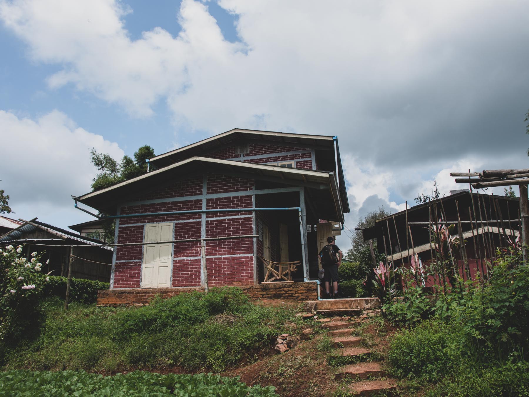 Le repas arrive. Je regrette d’avoir encore quelques difficultés de digestion et de ne pas pouvoir finir tout ce qui nous est servi. Une bonne petite soupe, quelques morceaux de poulet fermier, une salade d’avocats… le tout provient des champs que nous avons traversé. Affamés que nous sommes, chaque plat est plus dévoré que savouré. Repus, on s’effondre tous sur le sol, comme par un coup de baguette magique pour une sieste salutaire. La mienne fut courte, même si j’entame ce trek avec une forme incertaine, il m’en faut plus pour me fatiguer. Je m’assois à l’ombre du porche, près de l’entrée et je regarde la vie se dérouler sous mes yeux. Le vent caresse le carré de piments qui fait office de pelouse. Des enfants jouent à s’arroser près d’un petit puits qui recueille l’eau de pluie. Jolene discute avec l’ancien du village qui est également le propriétaire de la maison où nous nous trouvons actuellement. Il discutent dans un bâtiment adjacent au notre, fait de planches de bois, à l’intérieur noir de suie. Ce bâtiment fait office de cuisine avec un petit feu de bois qui brûle encore dans un coin. Face à cette scène, c’est comme si je remonte le temps. Cela me rappelle la campagne polonaise il y a quoi, au moins 25 ans de cela. Un quart de siècle… je m’étonne moi-même d’avoir déjà des souvenirs qui se mesurent dorénavant au quart de siècle. J’avais 8 ans alors.