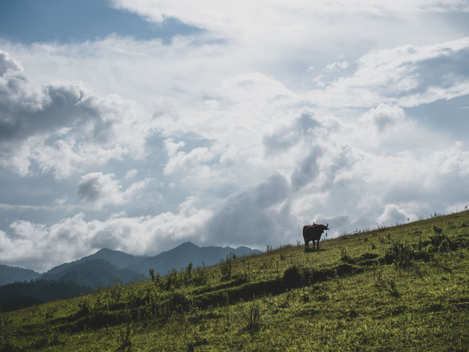 Je tiens à vous prévenir. Il n’y a pas de sommets blancs immaculés qui apparaîtront au loin , tel un demi rêve éveillé, comme vous pouvez les découvrir lors de vos trek au Népal. (il y en a en Birmanie mais pas dans cette région, c’est dans la région de Kachin avec la frontière avec la Chine. Pour tout vous dire, j’espère partir la découvrir ) Cela ne sera pas non plus un monde végétal qui s’ouvre à vous après les arides passages minéraux comme sur le Gr20 en Corse, non, cela ne sera rien de cela. Cela sera simplement un peu de marche et de dénivelé au milieu des champs et des villages birmans. Parfois, j’ai l’impression de me retrouver sur le trek des volcans d’Auvergne, au milieu des vaches, la chaleur et quelques arbres exotiques en plus.