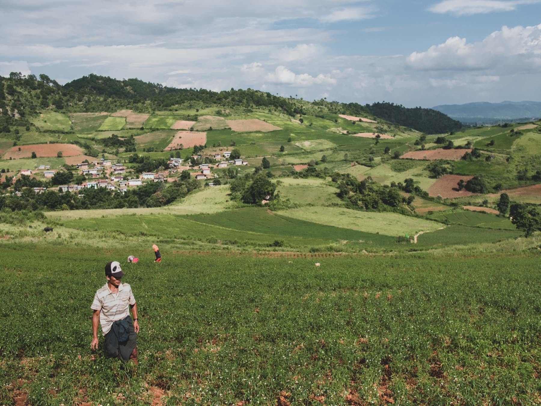 Les autres s’éveillent. Peu après, on fait nos adieux. Je demande la permission que j’obtiens avec le sourire (la photographie de portrait n’est vraiment pas évidente) et je prends une photo souvenir de l’ancien qui, malgré ses 78 ans, garde bon pied, bon œil. Il nous observe sur le départ, ses yeux brillants et malicieux, le visage illuminé par un sourire bienveillant. Je me retourne. Je croise probablement le regard pour la dernière fois. Échanges éphémères du bout du monde. Le temps passe vite sur les sentiers lorsque les conversations s’enchaînent. Je fais quelques photos de ci de là, lorsque je ne m’oublie pas dans mes propres pensées qui vaguent et se perdent sous la chaleur des durs rayons du moins de septembre.