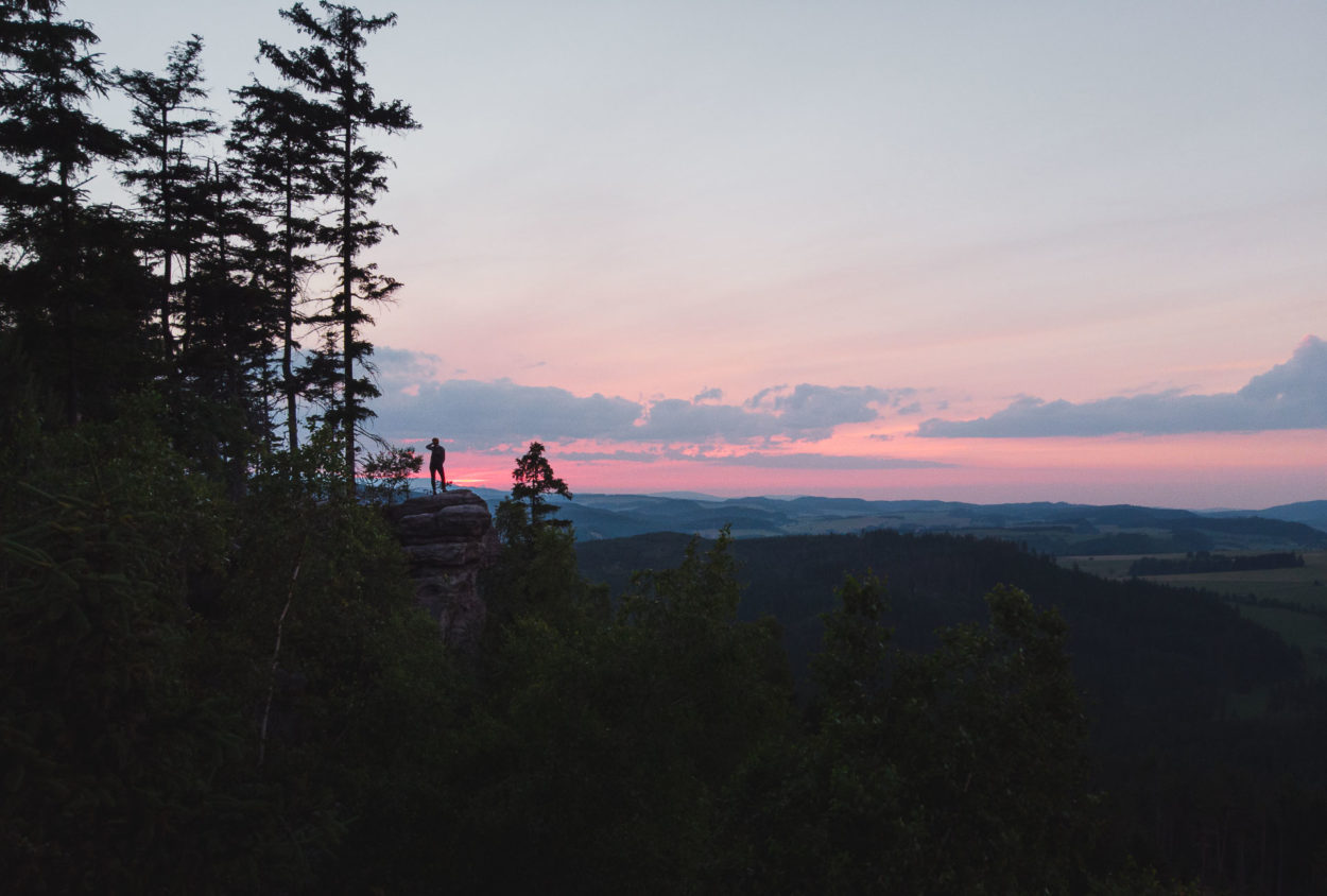 Si vous cherchez un endroit pour réaliser une belle balade forestière avec un point de vue surplombant les forêts aux alentours, les murs de Broumov répondront à vos attentes. Que ce soit pour le lever ou pour le coucher de soleil, une fois installé sur l’un des champignons de pierre posés entre entre les villes de Police nad Metují et de Broumov, vous aurez droit à un magnifique panorama ouvert sur la ville rocheuse d’Adršpach, ainsi que sur le haut plateau du mont Ostaš, sans oublier, au loin, sur le monastère baroque de Broumov dans lequel nous avons passé une nuit.