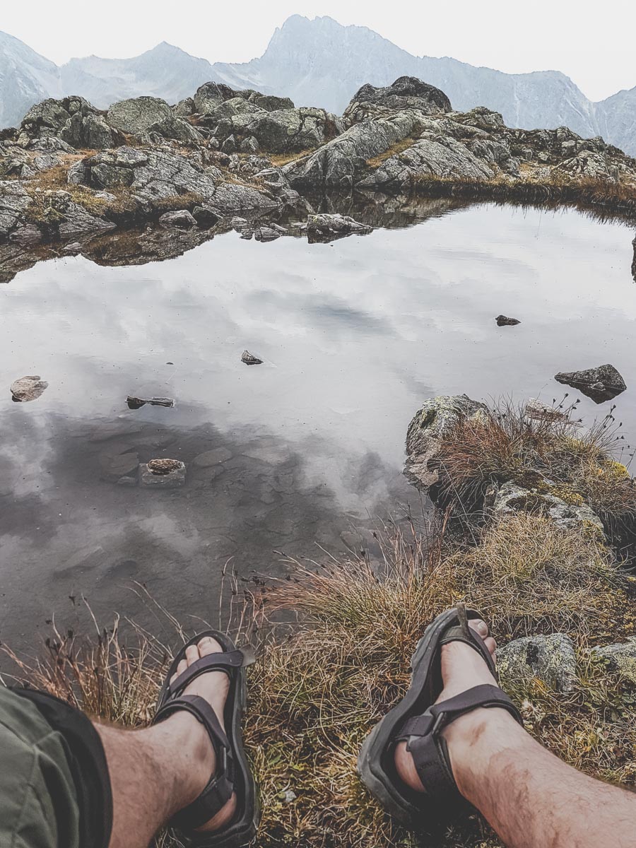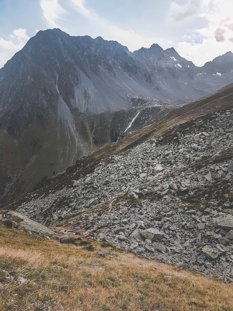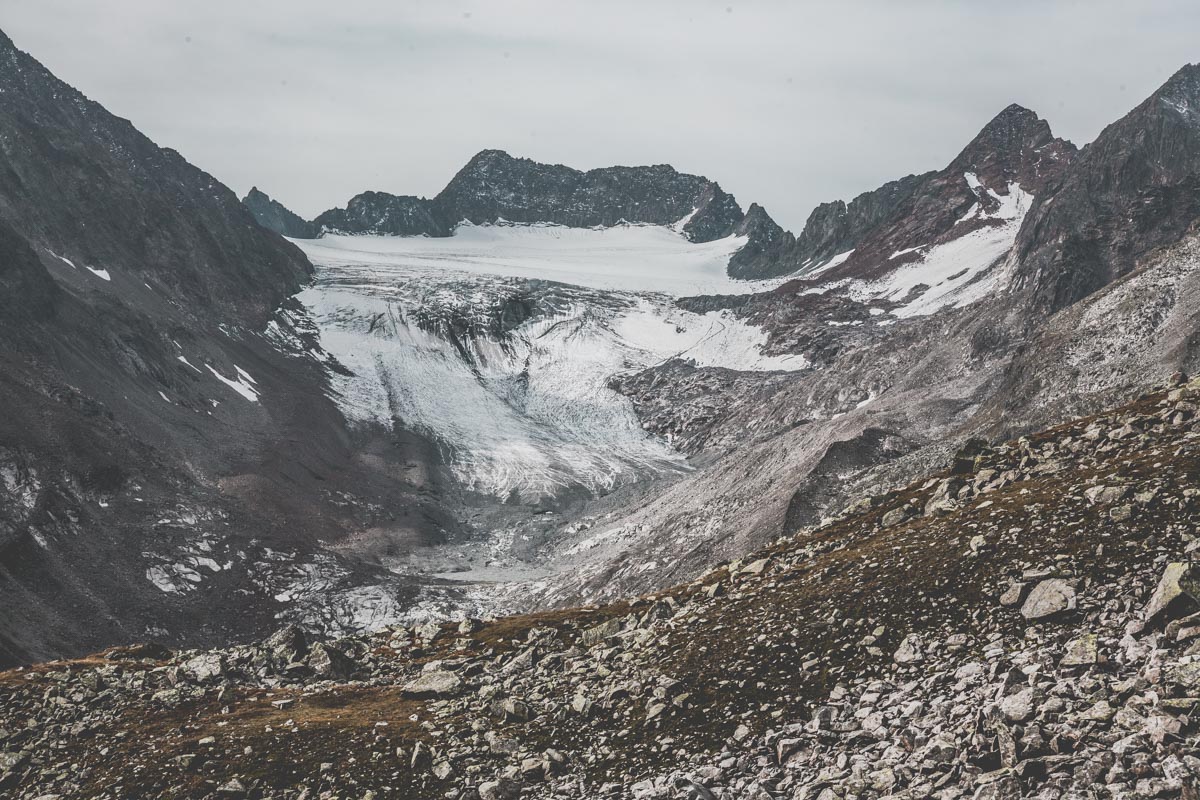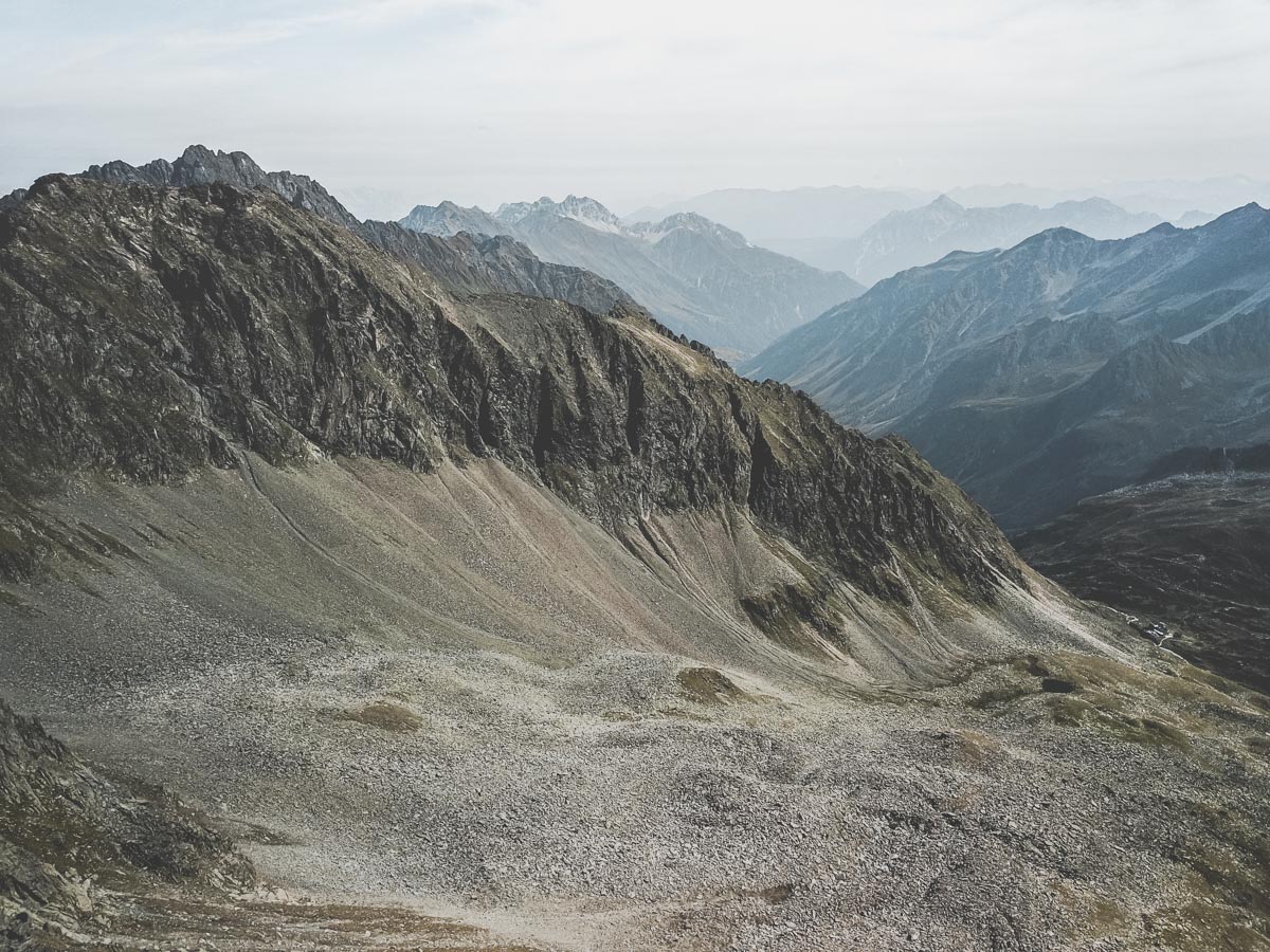 vue sur la Franz Senn hûtte en montant direction le Rinnenspitze. Il y a un air de couverture de livre fantastique avec cette photo vous ne trouvez pas ? L’aventurier qui trouve le dernier refuge de la civilisation au milieu de la nature sauvage. C’est cet effet de cocon protecteur qui nous séduit sans doute tant en montagne. Cet espace de liberté qui s’ouvre aux 4 vents. Un appel à respirer dans un terrain de jeu infini. On redevient ce gosse joyeux, malgré les ans, qui rêvaient tant de savoir ce qui se trouvait à l’autre bout du chemin…