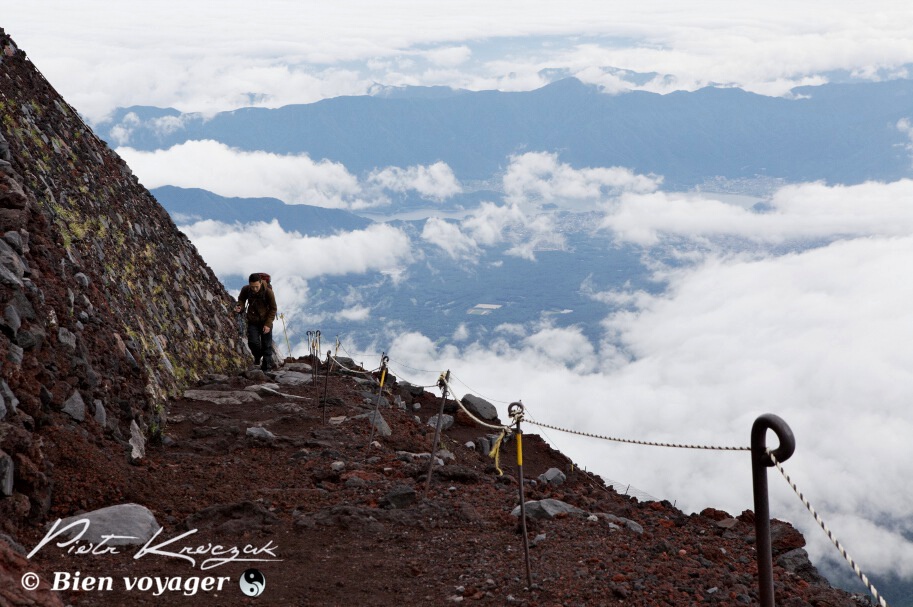 Je ne m’imaginais pas aller au Japon et ne pas grimper au sommet du Mont Fuji. Cela sonnerait comme aller à Paris en évitant des yeux la tour Eiffel. De fait, je suis bien monté jusqu’au sommet. Rien n’est difficile, tout est dans le mental. Ayant croisé des personnages âgées ainsi que des enfants au retour, pour y parvenir, allez-y simplement mais sûrement.