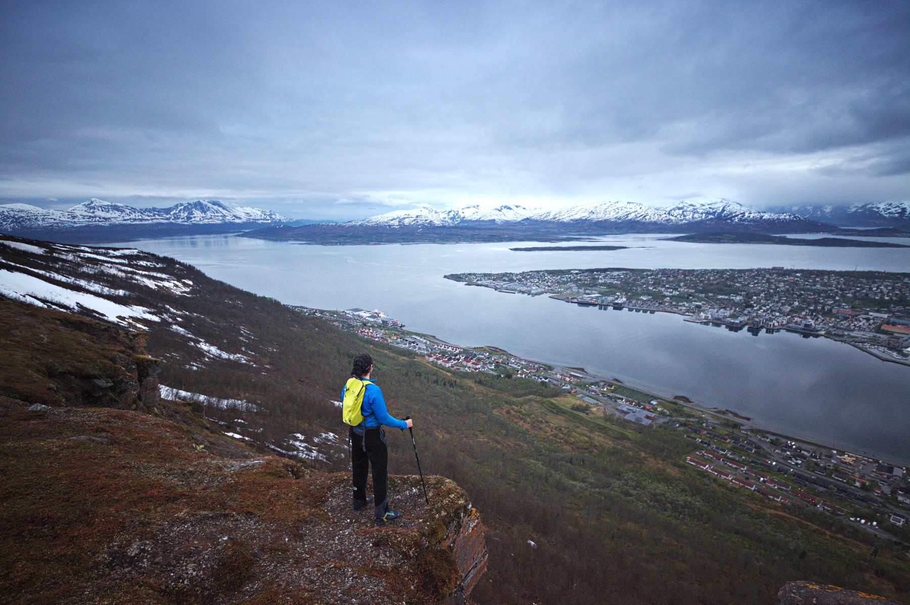 Il n’y eut pas un jour sans surprise. A la lumière de minuit, même la vue de Tromso enveloppée de nuages, alors que j’effectuais une courte randonnée me menant au poste d’observation du téléphérique, me saisit par les tripes. Peut-être était-ce cette énergie solaire qui, chassant la nuit, m’enivrait. Durant toute mon exploration, je fus d’ailleurs ivre d’expérience. Ivre d’une énergie sans pareil. Euphorique à chaque instant. D’où l’expression des plus justifiée “saoul comme un polonais”. Car bien que saoul de fatigue, j’étais des plus désireux de partir au combat et d’explorer encore et toujours plus.